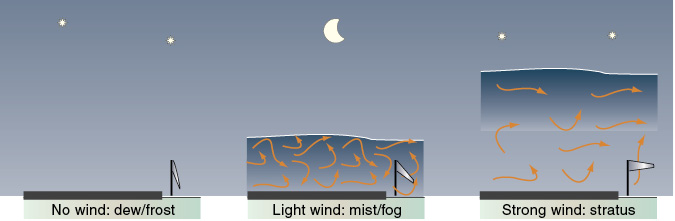 Figure 18-4 Wind strength will affect the formation of dew/frost, mist/fog or stratus clouds.