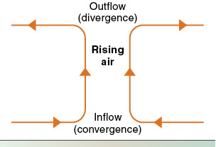 - an outflow of air from the high pressure area in the lower layers (divergence);