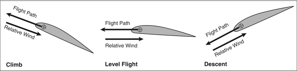 In aerodynamics, relative wind is the wind felt by an airfoil. It is created by the movement of air past an airfoil, by the motion of an airfoil through the air, or by a combination of the two. Relative wind is parallel to and travels in the opposite direction of the flight path of the airfoil. See Figure 1-4.