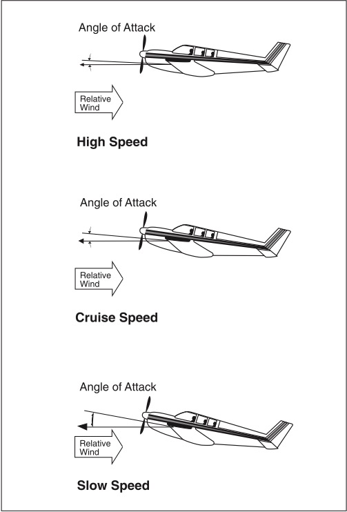 The angle of attack is the angle between the chord line of the airfoil and the relative wind. By manipulating the aircraft controls, the pilot can vary the angle of attack. See Figure 1-5.