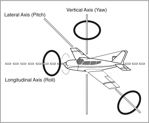 Aircraft have three axes of rotation: the lateral axis, longitudinal axis, and the vertical axis. See Figure 1‑7.