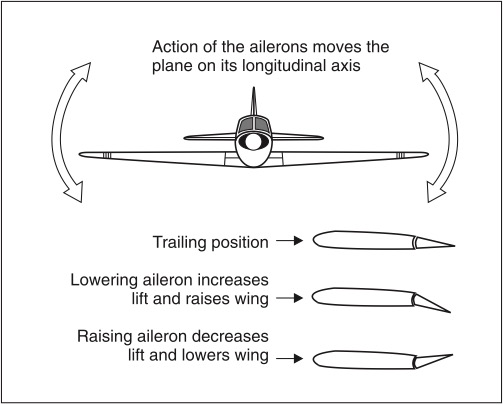 The longitudinal axis is an imaginary line from the nose to the tail. Rotation around the longitudinal axis is called roll. Roll is controlled by the ailerons, and this rotation is referred to as lateral control or lateral stability. See Figure 1-9.