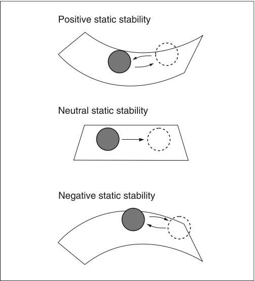 Positive static stability is the initial tendency of an aircraft to return or not return to its original position. See Figure 1-15.