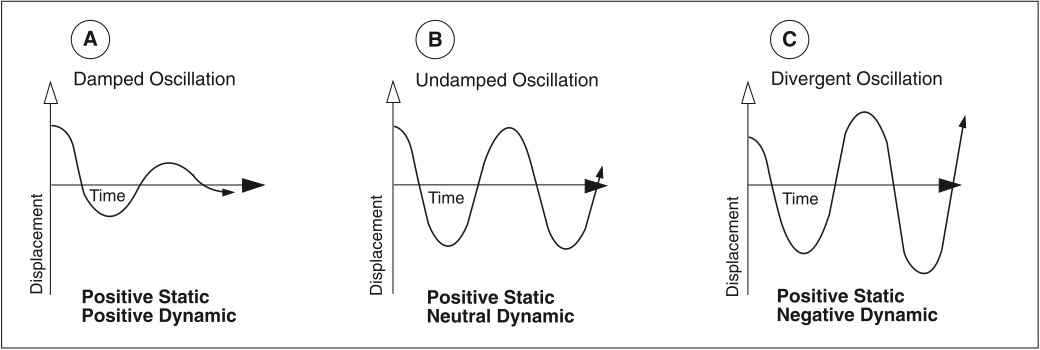Positive dynamic stability is the tendency of an oscillating airplane (with positive static stability) to return to its original position relative to time. See Figure 1-16.