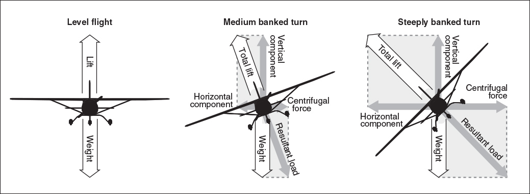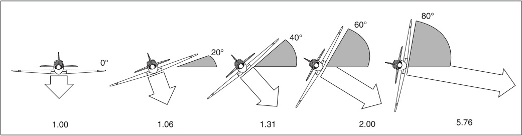As the angle of bank of a turn increases, the load factor increases, as is shown in Figure 1-19.