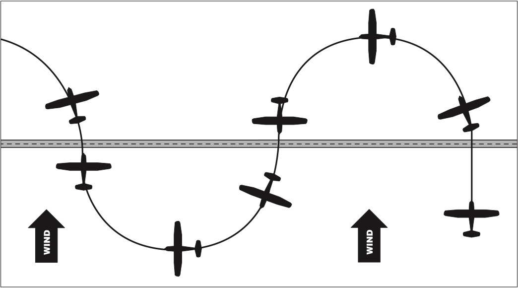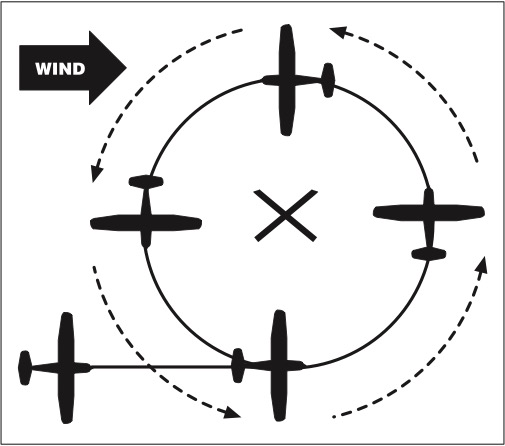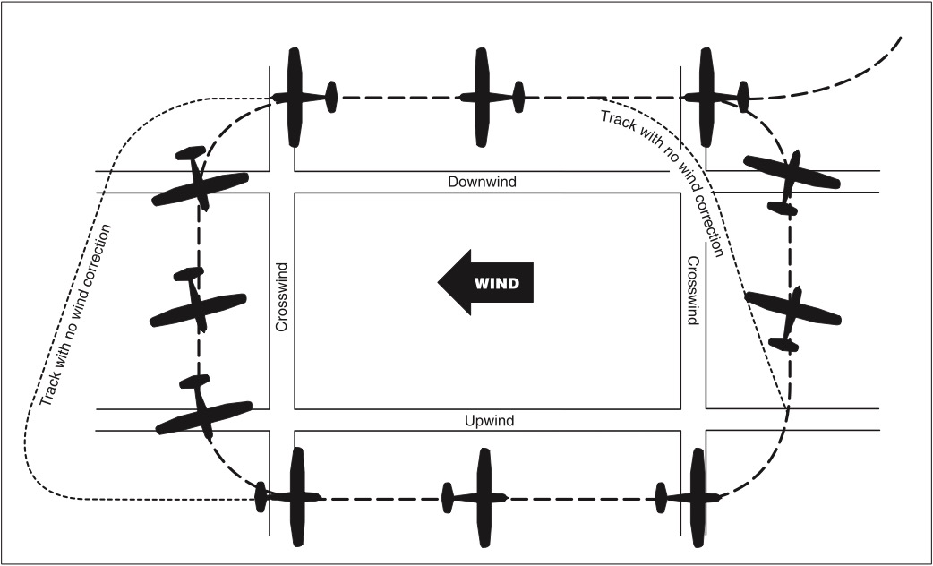 When flying turns around a point, the wings will be in alignment with the pylon only during the time the airplane is flying directly upwind or directly downwind. At all other points, a wind correction angle will keep the wings from pointing directly at the pylon.