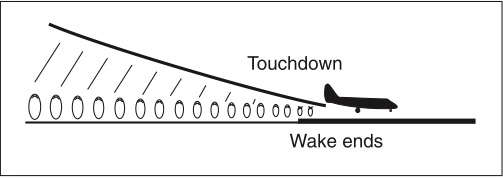 To avoid wake turbulence when landing, a pilot should note the point where a preceding large aircraft touched down and then land past that point. See Figure 1-29.